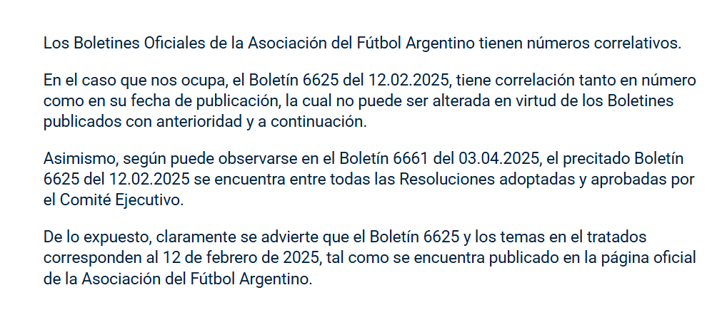 Allí se explicó que los boletines oficiales de la AFA “tienen números correlativos y no pueden ser alterados”.