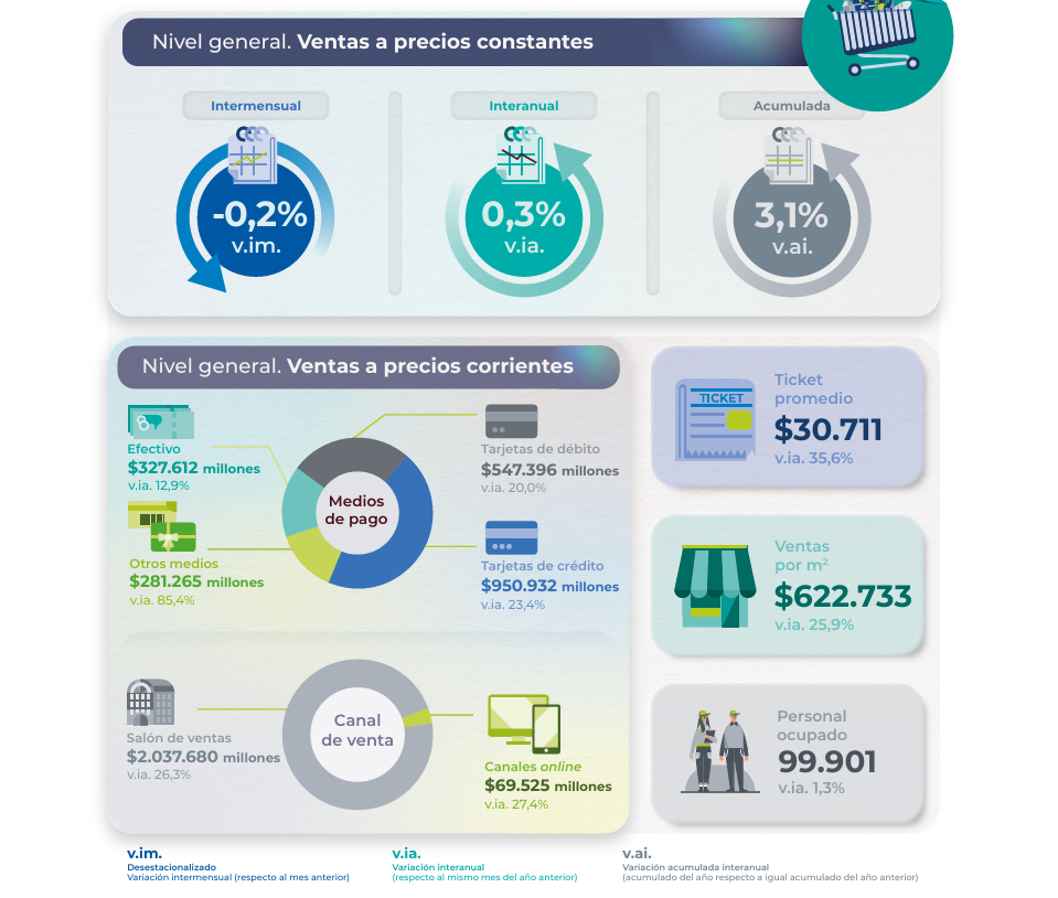 Las ventas totales a precios corrientes sumaron $319.736,3 millones, un 14,6% más que en el mismo mes de 2024.