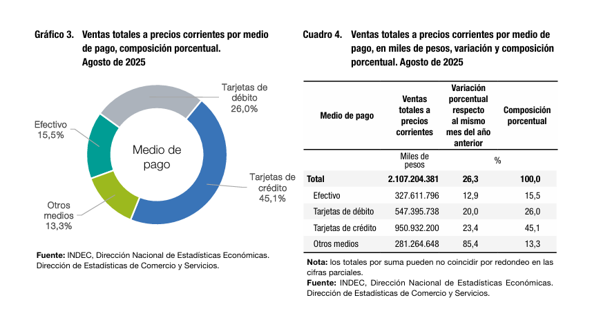 En comparación con el mismo mes de 2024, las ventas mostraron una leve suba de 0,3%, mientras que el acumulado entre enero y agosto de 2025 evidenció un crecimiento de 3,1% interanual.