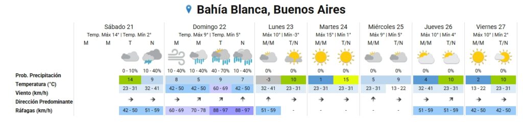 El Servicio Meterológico Nacional emitió una alerta naranja por vientos intensos para Bahía Blanca y la zona costera de la región.