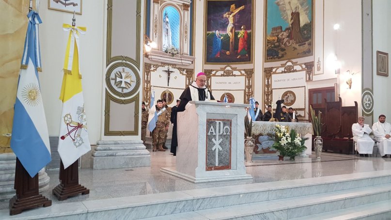 Tras la ceremonia en plaza Rivadavia las autoridades se trasladaron a la Iglesia Catedral Nuestra Señora de la Merced donde se celebró el tradicional Te Deum presidido por el arzobispo Carlos Azpiroz Costa.