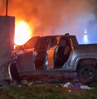 Una camioneta RAM se fugó en un control policial en Brown y Montevideo. Tras varias cuadras de persecución, chocó contra una casa en Láinez y Cacique Venancio y se prendió fuego.