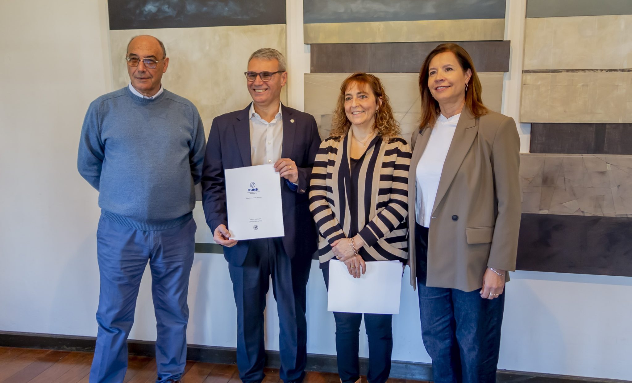 El rector de la Universidad Nacional del Sur, Daniel Vega, y la vicerrectora, Andrea Castellano, recibieron este lunes el primer informe económico de la campaña #ReconstruirUNS, impulsada tras la inundación que afectó gravemente a la institución y a la ciudad.