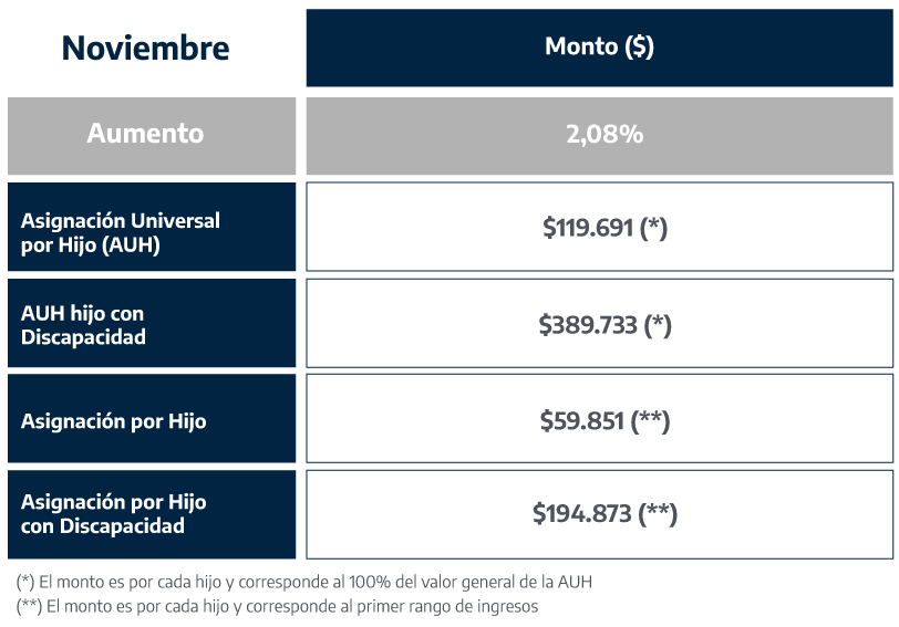 - Asignación Universal por Hijo (AUH): $95.737,66