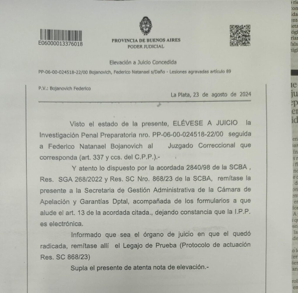La justicia de La Plata resolvió elevar a juicio oral una causa por violencia de género contra Federico Natanael Bojanovich, candidato a diputado provincial por La Libertad Avanza (LLA) en la Tercera Sección Electoral.