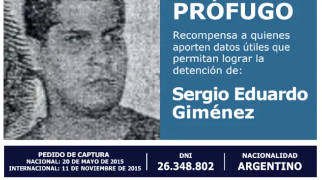 Se fijó una recompensa de $10 millones por datos de Sergio Eduardo Giménez