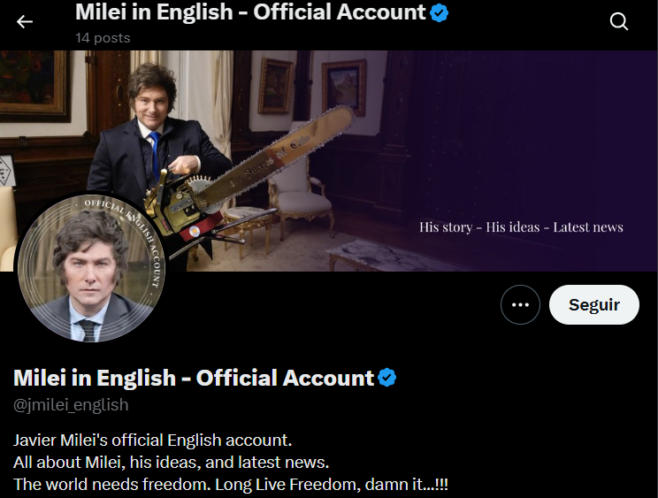 Sin embargo, la novedad duró poco: la cuenta @jmilei_english en X fue suspendida apenas cinco horas después de su creación, sin que se detallaran los motivos.