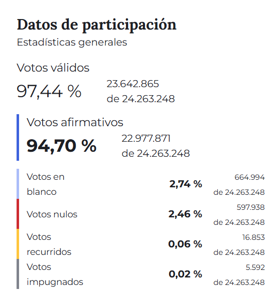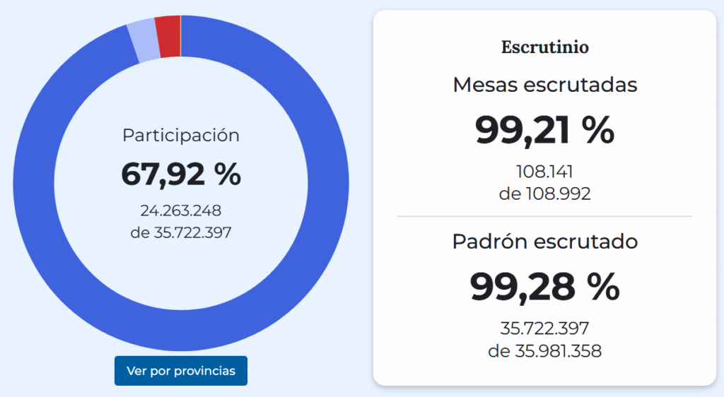 Se trata de la más baja desde el regreso de la democracia en 1983. Quiere decir que unas 11.459.149 personas no fueron a votar.