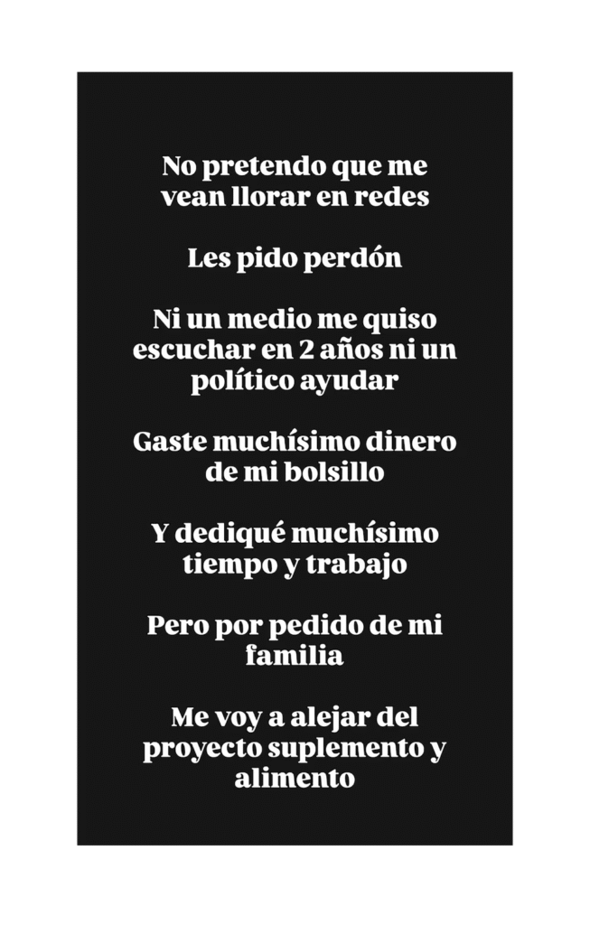 También anunció que, por pedido de sus seres queridos, se alejará momentáneamente del proyecto que lidera.