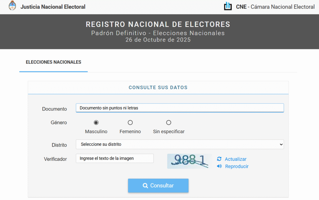 A partir de hoy ya está disponible el padrón electoral definitivo para las elecciones nacionales del 26 de octubre.