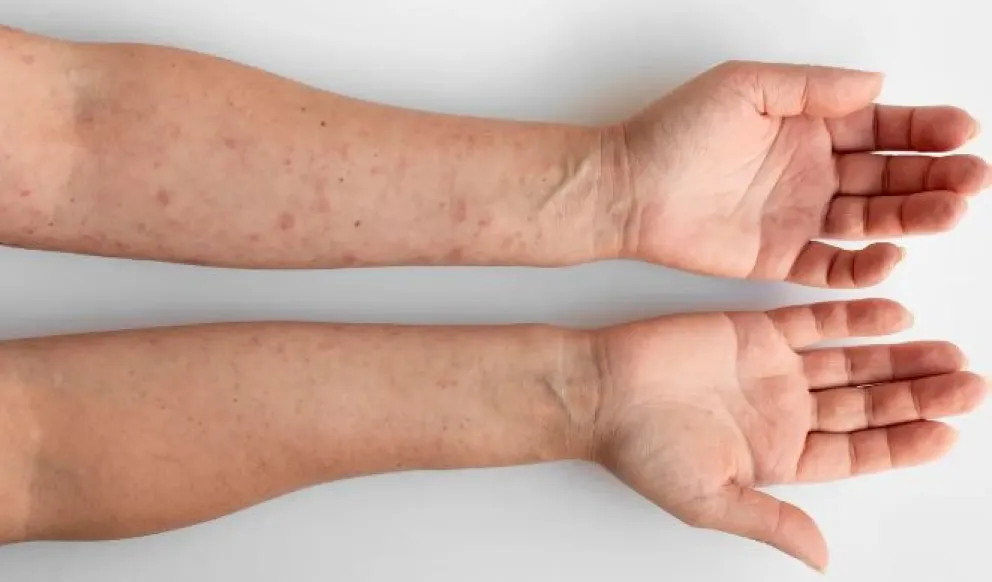 • Sífilis secundaria: se manifiesta con manchas o erupciones en distintas zonas del cuerpo.